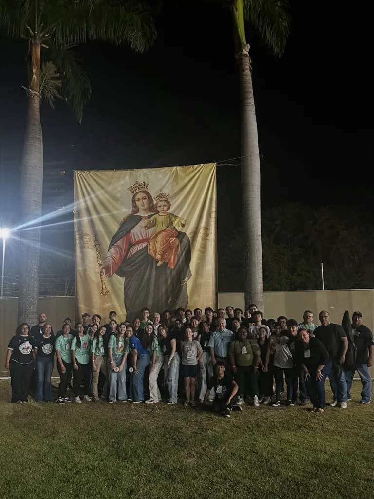 Após as atividades nas tendas, os participantes desfrutaram de um almoço especial, seguido por um momento oratoriano repleto de jogos recreativos e dinâmicas com muita música e dança. A programação prosseguiu com o evangeliza show, apresentado por uma banda local, que encerrou com um momento mariano conduzindo os jovens à celebração eucarística.