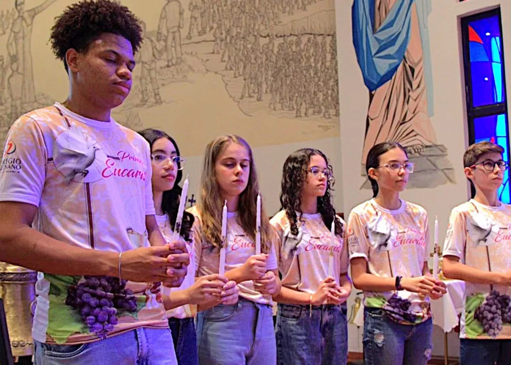 Estudantes do Colégio Dom Luiz Lasagna recebem a Primeira Eucaristia em Araçatuba