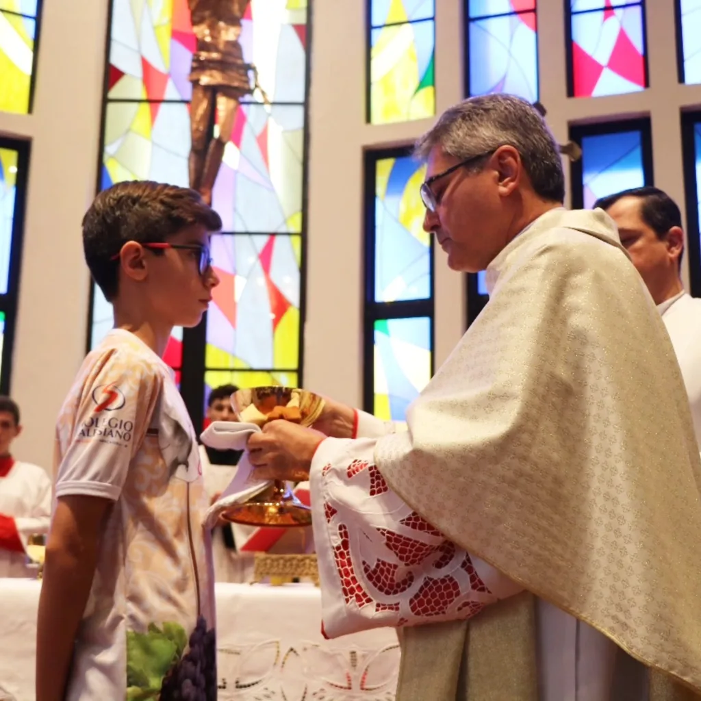 Dentro da pedagogia salesiana, a Eucaristia se une à razão, à religião e ao amor educativo. O sacramento não se reduz a um rito, mas torna-se experiência concreta de fé que desperta compromisso com o bem comum. Ao participar da catequese e da celebração, o aluno descobre que o aprendizado vai além do conteúdo escolar e alcança a dimensão do coração, onde se forma o caráter e a esperança.