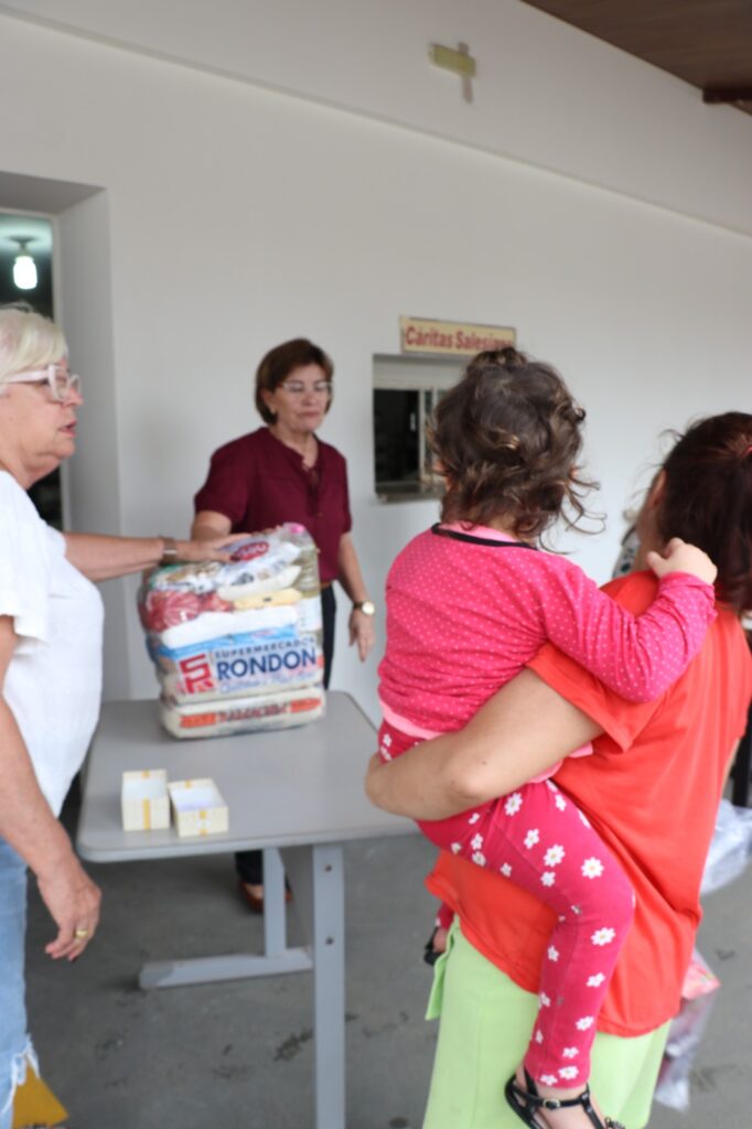 A tarde da última terça-feira, 09/12, foi marcada por emoção e gratidão no Colégio Salesiano de Araçatuba, onde a Cáritas Salesiana, composta por 12 voluntárias dedicadas ao atendimento de famílias em situação de vulnerabilidade, realizou mais uma entrega de cestas básicas para membros de 90 famílias, incluindo a tradicional Cesta de Natal, preparada especialmente com panetone, doces, bolacha, goiabada, salsicha e frango.