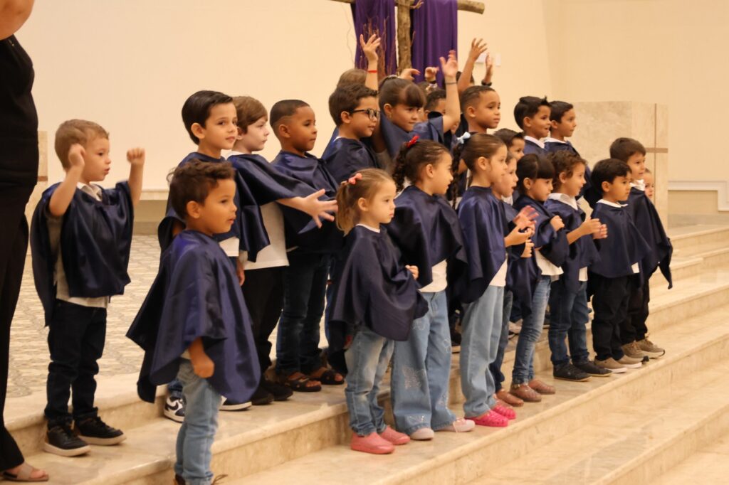 A 2ª edição da Cantata de Páscoa do Colégio Salesiano “Dom Luiz Lasagna” foi marcada por emoção, fé e envolvimento coletivo. Realizado na Igreja Universitária do UniSALESIANO, no dia 31 de março, o evento reuniu alunos da Educação Infantil e dos anos iniciais do Ensino Fundamental, familiares e convidados em uma celebração que destacou o verdadeiro sentido da Páscoa: a ressurreição de Jesus e a renovação da esperança.