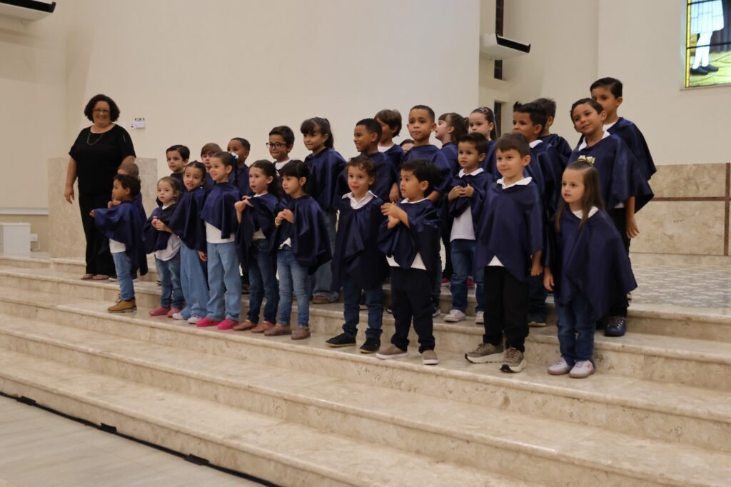 A cantata teve início com as apresentações das crianças da Educação Infantil (Infantil I, II e III), que encantaram o público com músicas cheias de alegria e simbolismo. Com olhar simples e sincero, típico da infância, os pequenos transmitiram mensagens de amor, partilha e renovação, reforçando valores cultivados no ambiente escolar.